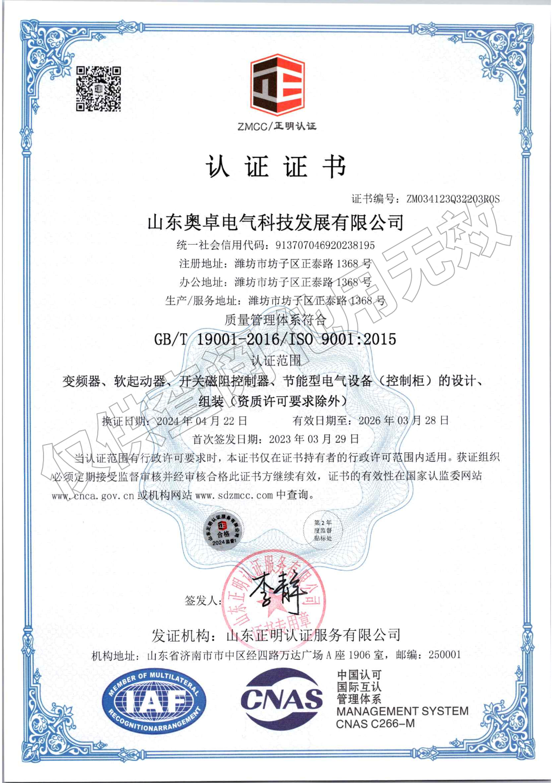 山東奧卓電氣科技發展有限公司成立于2009年,是一家集智能、節能自動化產品的研發、生產、銷售于一體的高新技術企業。公司堅持以市場為導向、以科技為引領的發展思路,專注于工業控制類軟硬件產品的研發與生產,緊緊圍繞產品與項目、售后服務與維修、國際貿易、職業教育和信息數字化技術服務五項業務板塊開展運營,并憑借在各業務領域的扎實深耕與成效突破,成功獲評山東省“瞪羚企業”、山東省“專精特新企業”、山東省“晨星工廠”企業、山東省“高端品牌培育企業”和濰坊市“隱形冠軍”企業。